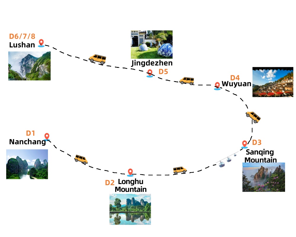 Destinations: Nanchang-Sanqingshan-Wuyuan-Jingdezheng-Lushan