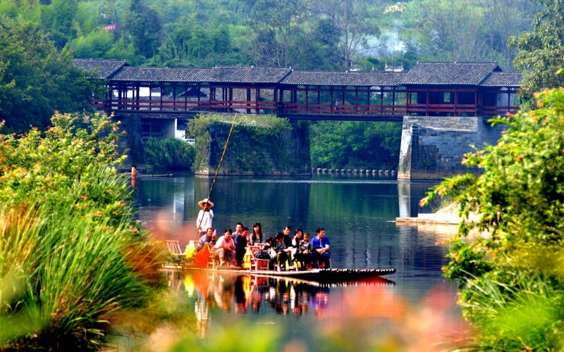 After a refreshing break, we continue our exploration of Wuyuan. One of the highlights is Qinghua town's 800-year-old Caihong (Rainbow) Bridge. This is undoubtedly one of the finest preserved and most captivating roofed bridges in southern China. Spanning a length of 140 meters and a width of 7 meters, this architectural masterpiece from the Song dynasty boasts five corridors and six pavilions, each exuding a sense of elegance and tranquility. As we cross the bridge, we are greeted by the serene beauty of the surrounding landscape. Mountains and streams create a picturesque backdrop. The bridge itself is adorned with intricate carvings and designs, a testament to the craftsmanship and vision of the builders who constructed it centuries ago.