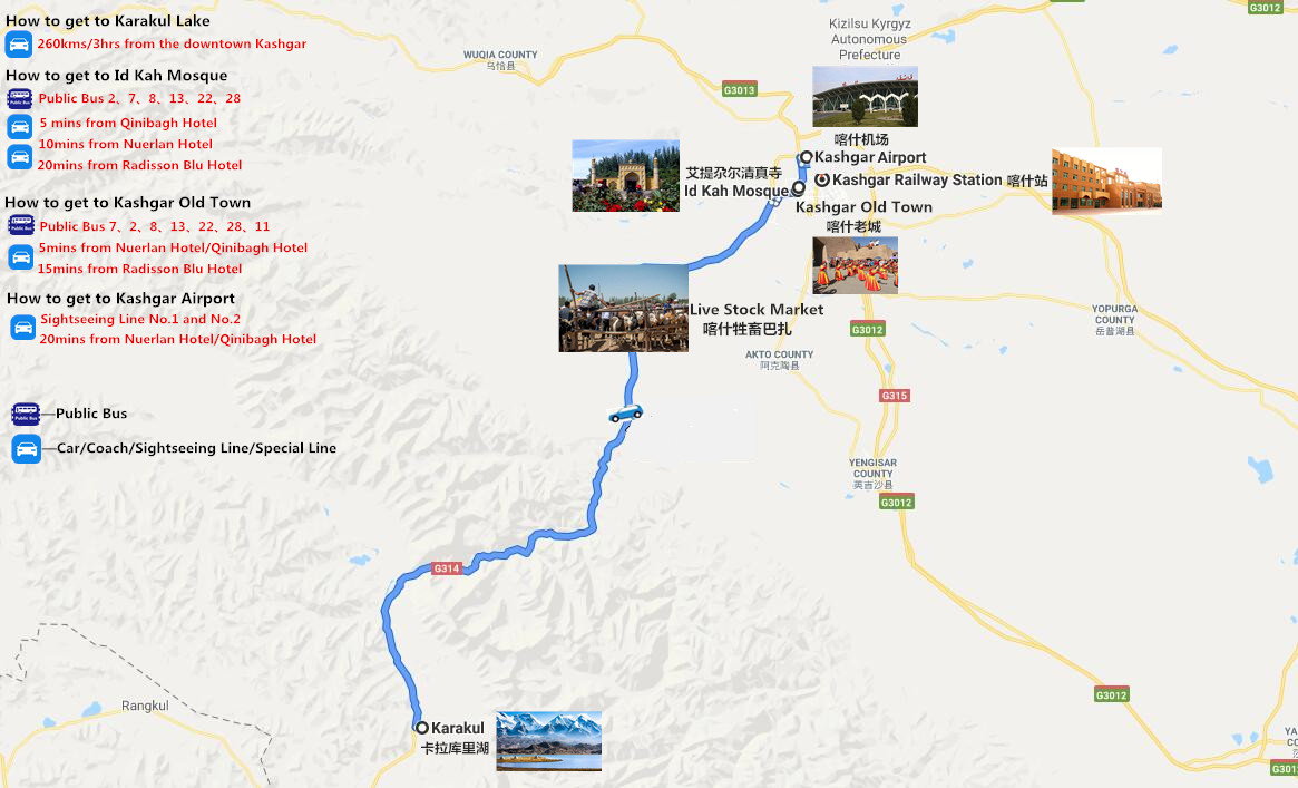 The Luxurious Travel Bus from Kashgar to Taxkorgan and Aksu to Kashgar listed in the itinerary.