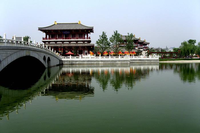 Continue our sightseeing of Tang Paradise, which features numerous buildings, squares, and gardens, all incorporating features of traditional Tang Chinese architecture.
