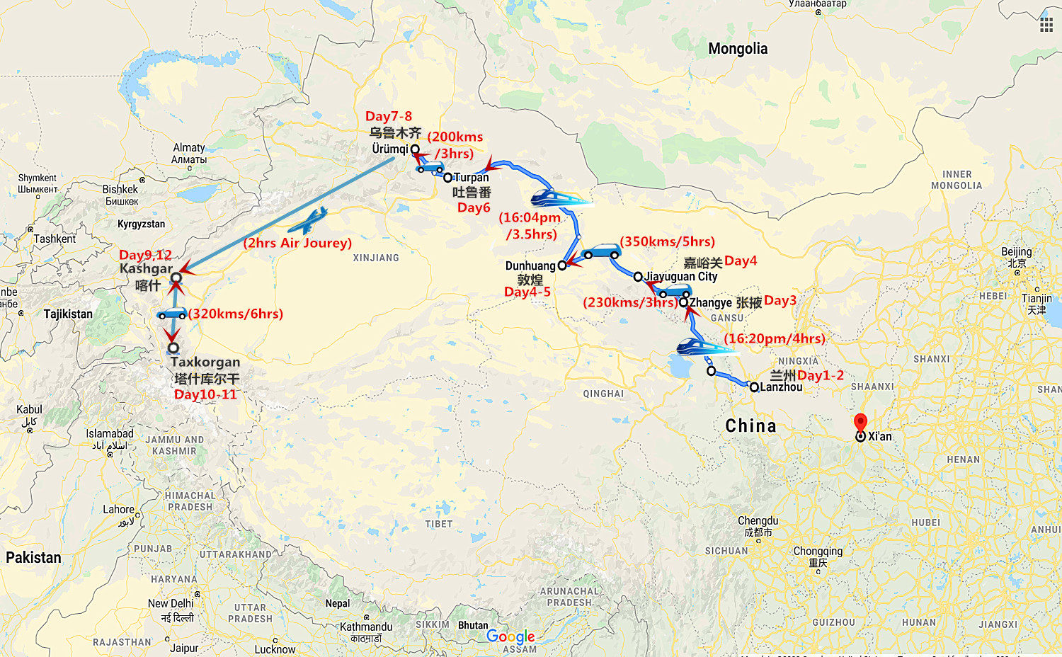Destinations: Lanzhou - Zhangye - Jiayuguan - Dunhuang - Turpan - Urumqi - Kashgar