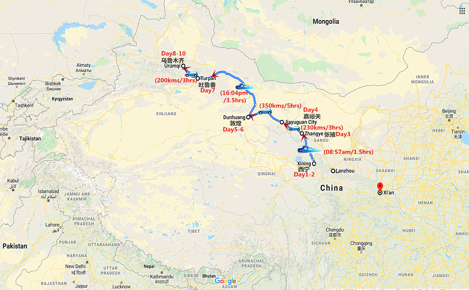 Destinations: Xining - Zhangye - Jiayuguan - Dunhuang - Turpan - Urumqi