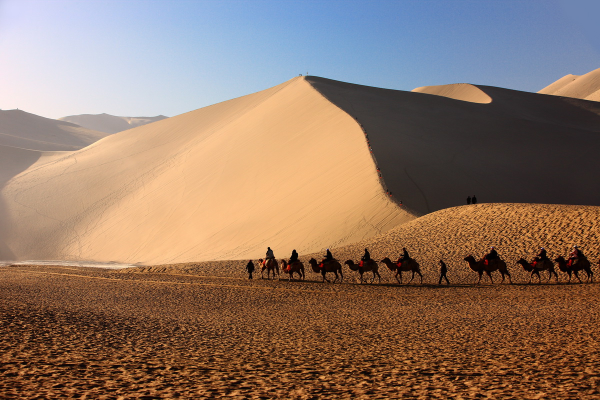 An exciting day for exploring Mogao Grottoes, also known as the Thousand Buddha Grottoes. This UNESCO World Heritage site is one of the great artistic and religious wonders of the world and it is famous for its exquisite murals and various sculptures inside the caves. It is Chinese treasure aswell. After touring Mogao Grottoes, you will pay a visit Echoing Sand Mountain&Crescent Lake. The lake is a natural wonder surrounded by flowing sand but never get buried. Riding a camel as the Silk Road Caravan in the vast desert is highly recommended
