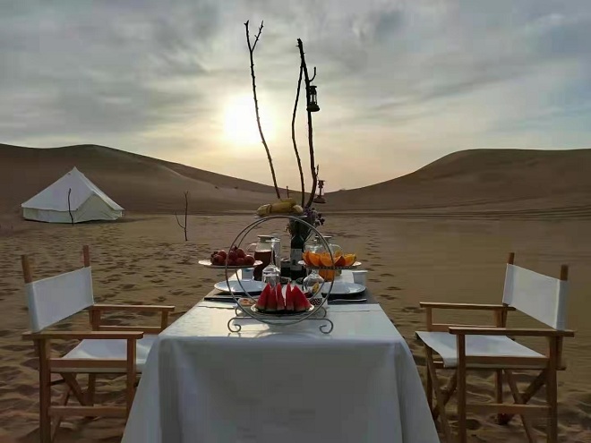 Dunhuang is a wonderful city with great natural wonders. Upon arriving, you will be met at the airport and helped to checked in the nice hotel. Then feel free to hang around Wetland in the rest of time. Today we will arrange the GALA DINNER in the desert and enjoy camping with bonfire. (the jeep will bring you to the top of the desert about 10 minutes driving)
