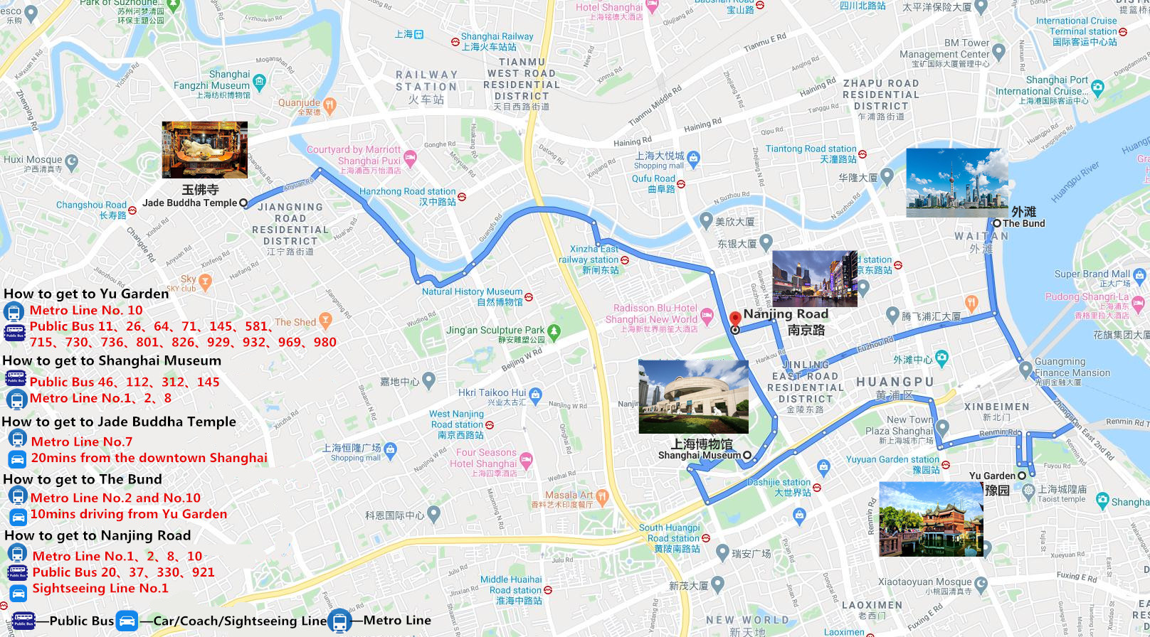 Walk along the well-known shopping area that offers a dizzying array of items--Nanjing Road Shopping Street, you can stroll around the Bund, this symbol of Shanghai is known worldwide as the "gallery of international architecture". Its assortment of buildings standing along the Huangpu River varying in height, color and architectural design make it one of the most magnificent skylines in the world. enjoy the scenery of Huangpu River.