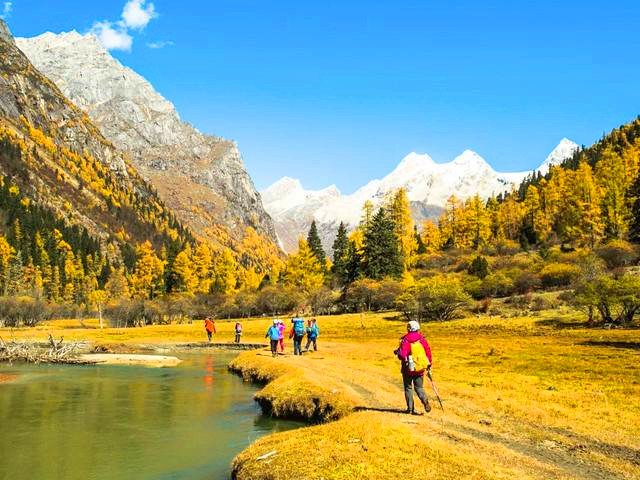 Full day sightseeing in Mt. Siguniang, if the weather is good, we can also enjoy the sunrise of Mt. Siguniang. Siguniang Mountain is a paradise for hikers. The canyon mountain road is rugged and narrow, and the flowered alpine meadows are gorgeous. We will start today's hiking tour in Changping Valley, mainly composed of forests, canyons and snowy mountains on the top of the canyon. There are Zhangmuzhai, Lama Temple, Ganhaizi, and spectacular waterfalls in the scenic area.