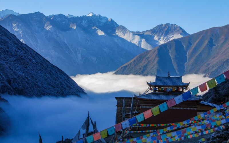After breakfast, we will depart along the Moxigou via the Winter Cattle Farm to the Gongga Monastery (3750m). This whole day trip is relatively flat. The Gongga Monastery is located at the foot of the main peak of Gongga Mountain and stands at an elevation of 3750 meters above sea level. Built-in the 13th century AD by the first generation of Gongga Living Buddha, the monastery provides an ideal place for meditation. It is one of the three holy places of the Kagyupa school (Baijiao) of the Tibetan Buddhism Karmaupa school and is the Dojo of Shengle Vajras, one of the five great Vajras in Tibet. Aside from being a famous religious destination, it is also one of the best locations for taking photos of the main peak of Gongga. From here, you can directly face the main peak of Gongga and access the depths of Gongga Glacier.