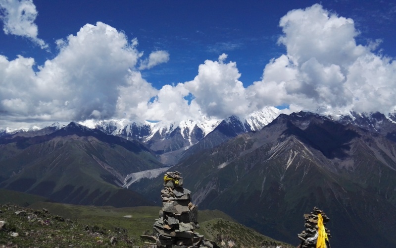 If the weather is good, you can wake up early to take photos of Yala Mountain at sunrise from the hillside near Muya Golden Tower. After breakfast, drive 102 km, which takes about 2.5 hours, to Kangding (2970m) to buy trekking supplies. Then, transfer to the Power Station via Laoyulin village (3250m) and meet the horsemen, packhorses, and chefs. Start trekking on the mountain. It's about a 2-hour walk to the Gexi grassland (3400m), then continues for about 4 kilometers to Red Stone Bay, and then another 4 kilometers to the two rivers (3780m). To the right of the two rivers, it leads to the Panpan Pass, and the left side goes to Riwuqie Pass.