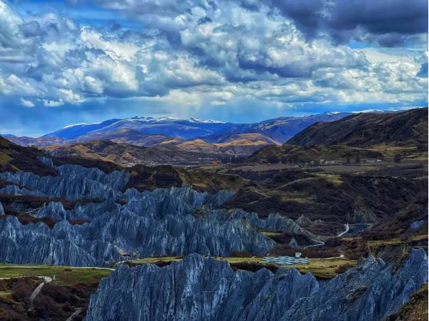 "Jia Ju" means a hundred households in Tibetan. The Tibetan stone buildings with red, white and brown colors are scattered along the bank of the Dadu River on the steep mountain wall at the foot of the snow mountain, forming a charming picture.