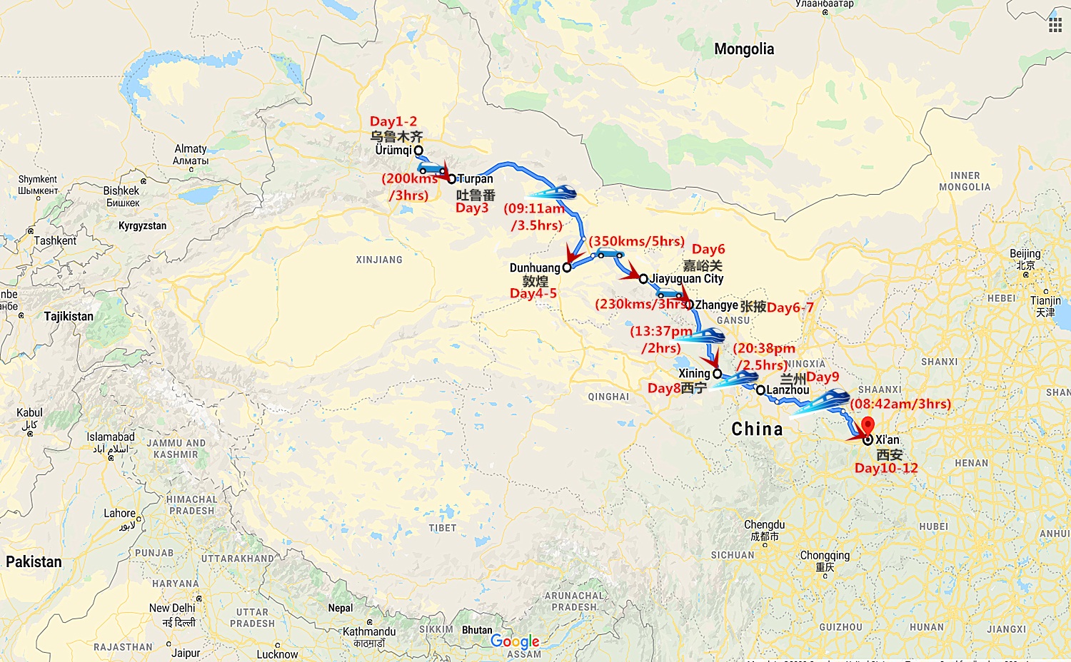 Destinations: Urumqi - Turpan - Dunhuang - Jiayuguan - Zhangye - Xining - Lanzhou - Xian
