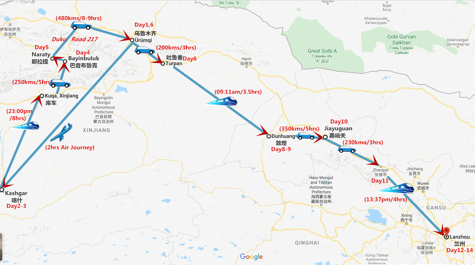Destinations: Urumqi-Kashgar-Kuqa-Bayinbuluk-Naraty-Turpan-Dunhuang-Jiayuguan-Zhangye-Lanzhou