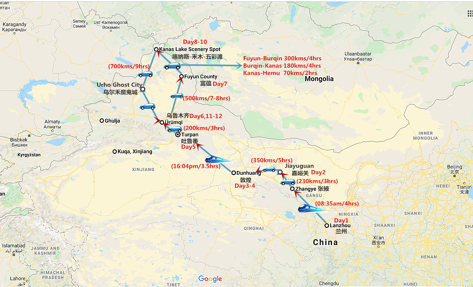 Destinations: Lanzhou - Zhangye - Jiayuguan - Dunhuang - Turpan - Urumqi - Burqin - Kanas - Hemu