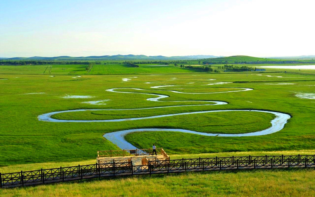 Get up early to climb up wooden steps to reach the grassland on the hill to enjoy the gorgeous sunrise. Scenery at the hill top overlooking the whole village, wooden houses, birch trees and the green colors river meandering its way in the village is really majestic.
