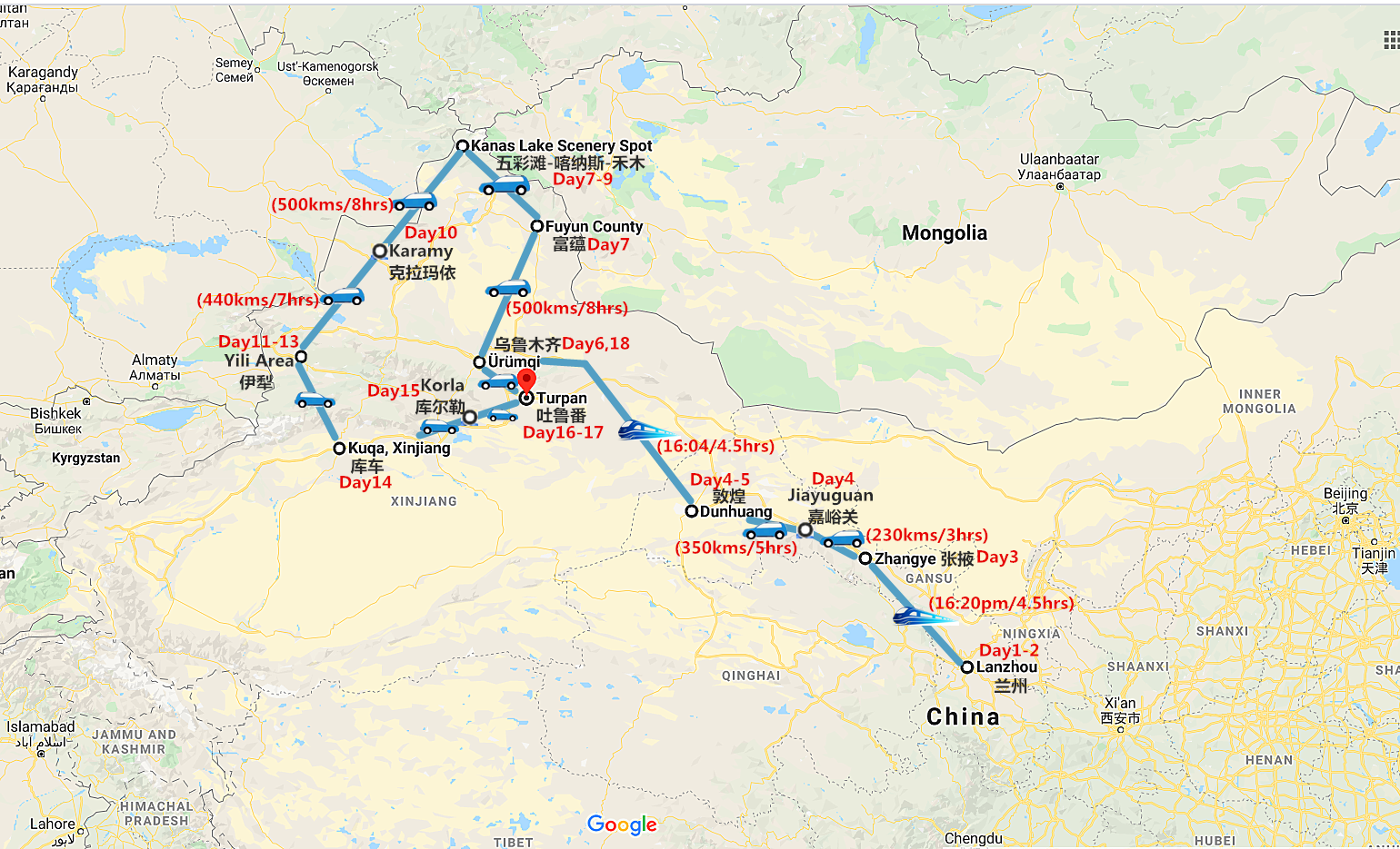Destinations: Lanzhou - Zhangye - Jiayuguan - Dunhuang - Urumqi - Kanas Lake - Turpan