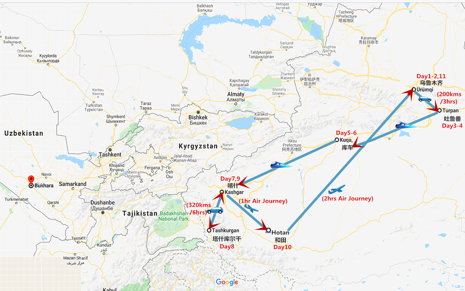 Destinations: Urumqi - Turpan - Kuqa - Kashgar - Taxkorgan - Hotan