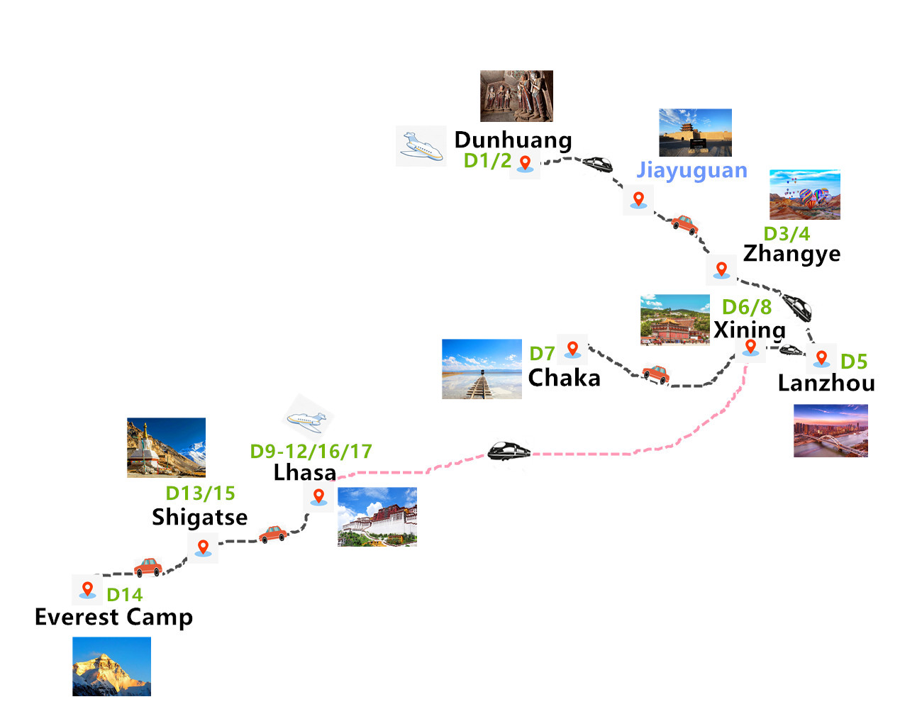 Destinations: Dunhuang - Jiayuguan - Zhangye - Lanzhou - Xining - Chaka - Lhasa - Shigatse - Rongbuk - Everest Camp