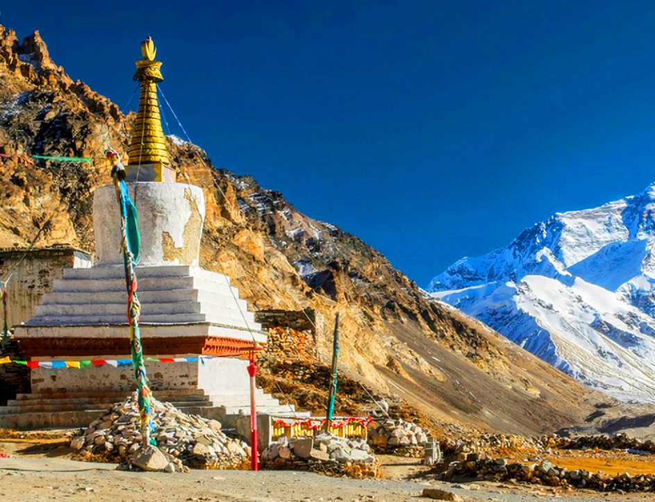 Tour the Everest Base Camp, crossing high-altitude passes for panoramic views of the world's tallest peaks, and witness the amazing sunrise over Mount Everest from Rongbuk Monastery.