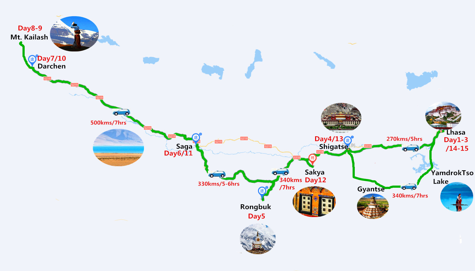 Destinations: Lhasa - Gyantse - Shigatse - EBC - Saga - Darchen - Sakya