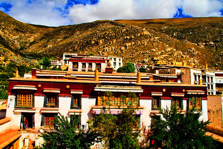 Explore Drepung Monastery, the Gelug school's ancestral hub featuring golden-roofed prayer halls and vibrant rituals beneath Gambo Utse Mountain.