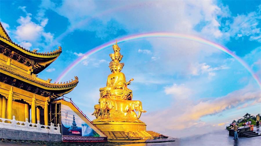 Then head to next destination——Mount Emei, known as one of the Four Great Buddhist Mountains in China and is reputed for its profound Buddhism culture. We will stop before Baoguo Temple, which is the first temple of Mount Emei. As the portal of the whole mountain, it's the center of various Buddhist activities, and the Emei Buddhist Association is also here.