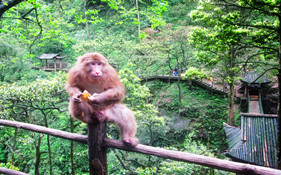 After that, we will take the scenic sightseeing car to the mid-mountain Wannian Temple parking lot, and then take the cable car up the mountain to visit Wannian Temple. Then, walk to Qingyin Pavilion, Yixiantian, and finally down the mountain from the Ecological Monkey Zone. Monkeys here are used to tourists. They will jump from one tree to another at ease and may grab the food from your hands. If you are OK with the monkeys, here is the place you can have a lot of fun with them.
