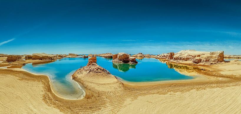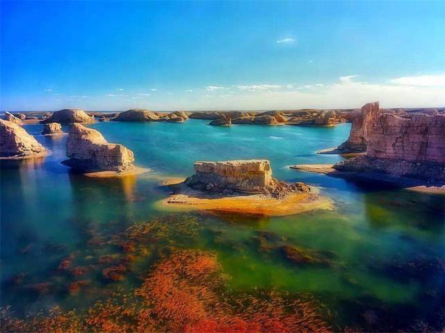 The only water Yadan found in Haixi of Qinghai Province in the world is close to the north of the North hilly natural area. It is surrounded by a vast expanse of desolate deserts. In this desolate place, it shows unparalleled amazing beauty. Yadan on the water, the ducks are singing and the wild geese are singing, the water is sparkling, the morning sun is rising, and the reflection of Yadan on the water is photographed, which is beautiful.