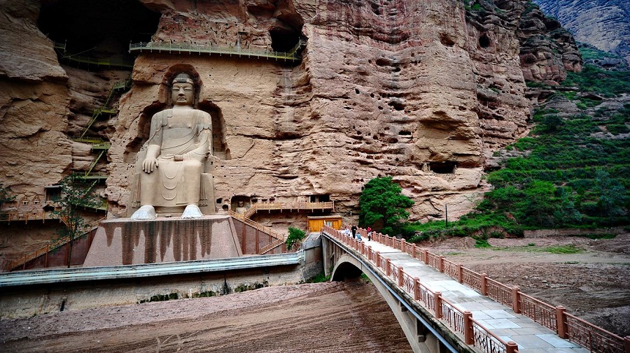 Let's continue to visit, later we are going to the Tiantishan Grottoes, also known as Temple of Giant Buddha. The grottoes are situated on the Huangyang River, about 60 km south of Wuwei (originally Liangzhou) and it was excavated during the Northern Liang dynasty (397–439 CE) when you entering the scenic area you will see some Buddha Statues and exquisite murals, that will definitely feast your eyes.