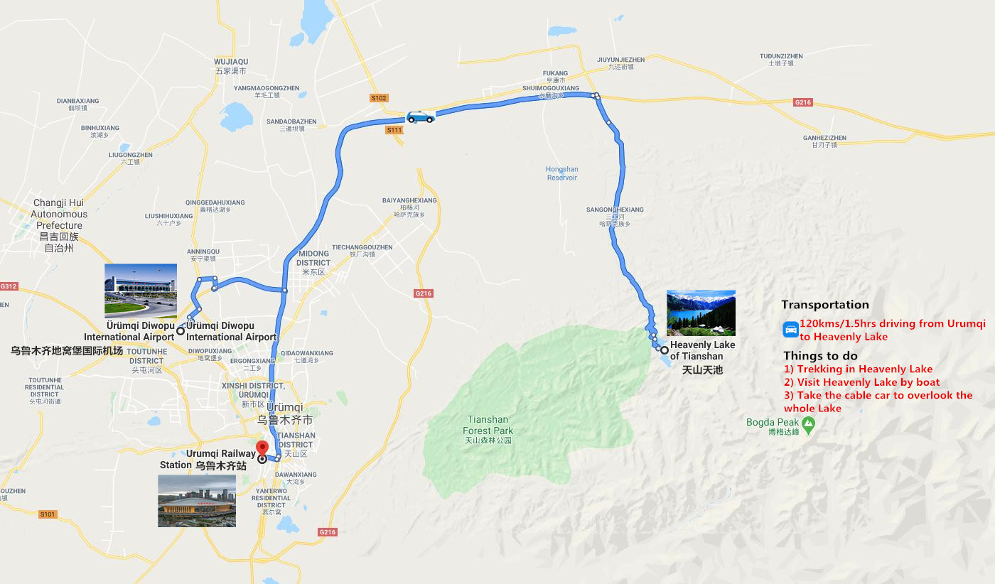 Our professional English Speaking driver will meet you at your located hotel lobby around 08:30. Your private day tour to heavenly lake continue with the driving of 1.5 hours to entrance of the Heavenly Lake, following is the 40-minutes shuttle bus twisting through the picturesque Tianshan mountains to the edge of the Lake. Either Trek around the lake, enjoy the boat riding cruise, or even take the cable car to the explore further to the Maya Mountain for the incredible view of Bogoda Peak.