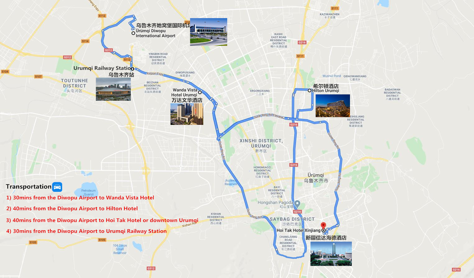 pls: It is about 20-30mins driving from Urumqi airport to the hotels in the city of Urumqi, such as Hilton Hotel, Mirage Hotel or Hoitak Hotel...