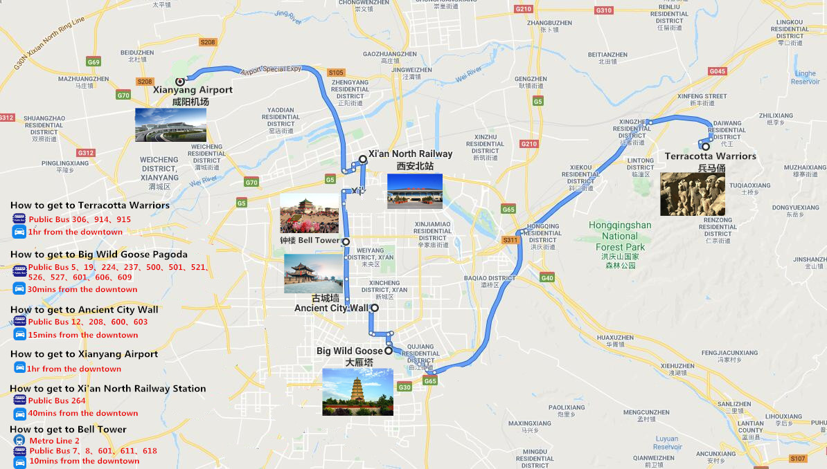 • It takes 30 minutes (26.7km) by car from Xi'an City to Xi'an Xianyang International Airport.