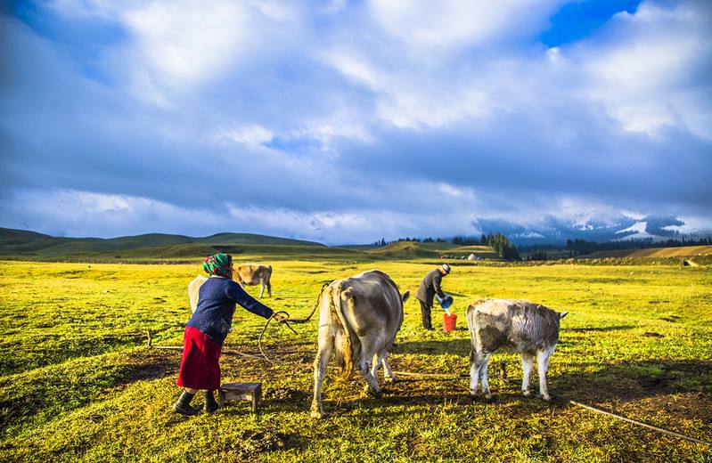 This morning, we will drive to Tekes, where your journey begins at the breathtaking Kalajun Prairie—a place as poetic and picturesque as a painting. The prairie is dotted with numerous springs, making it an ideal gathering place for local herders to trade goods and celebrate cultural traditions. "Kalajun" in Kazakh means "dark wilderness", and for generations, the people here have maintained a simple yet enchanting nomadic lifestyle, radiating timeless charm.