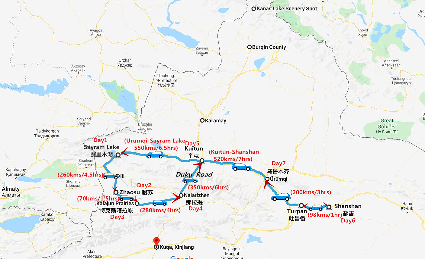 Destinations: Urumqi - Sayram Lake - Zhaosu - Tekes - Kuitun - Shanshan - Turpan