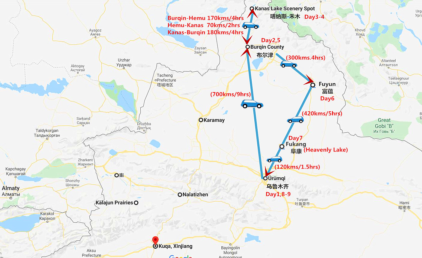 Destinations: Urumqi-Burqin-Hemu-Kanas-Fuyun