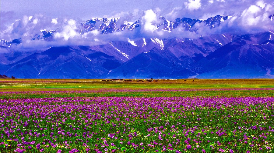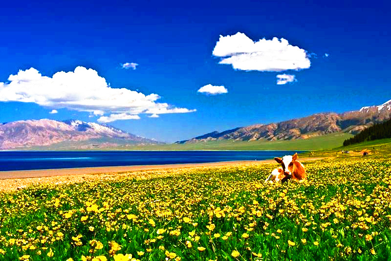 ● Enjoy the fantastic landscape of Sayram Lake, where you can see the blooming wildflowers and beautiful grasslan