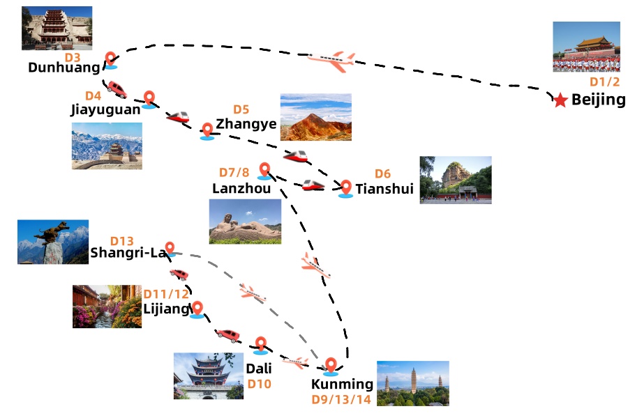 Today, we'll drive to Yongtai Ancient City, which was built in Ming Dynasty. It's has a history of more than 400 years. Then back to Lanzhou and transfer to the airport to catch your flight to Kunming. Have a good rest.