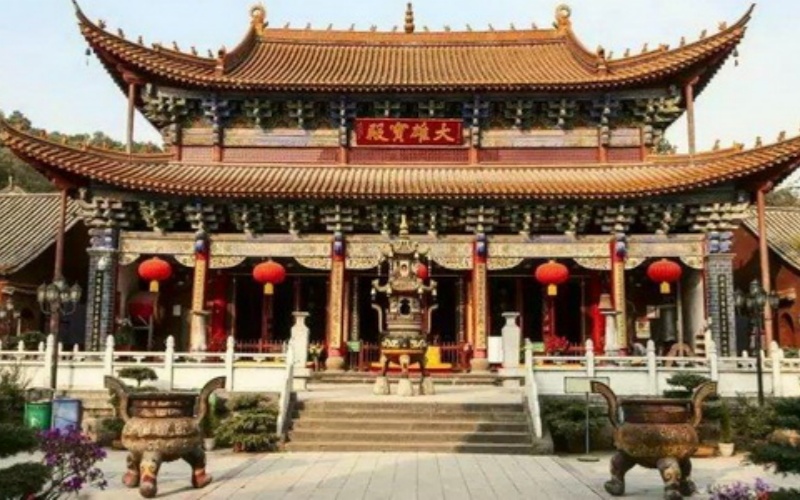 Qiongzhu Temple, also known as Bamboo Temple, is a Buddhist temple located on Yu'an Mountain to the northwest of Kunming, Yunnan, China. The name of the temple, Qiongzhu, refers to a type of bamboo (genus Qiongzhuea). The temple was established during the Yuan Dynasty as the first temple dedicated to Zen Buddhism in Yunnan. Though it has been burned down and reconstructed several times, the present structure mostly dates from the late Qing Dynasty.